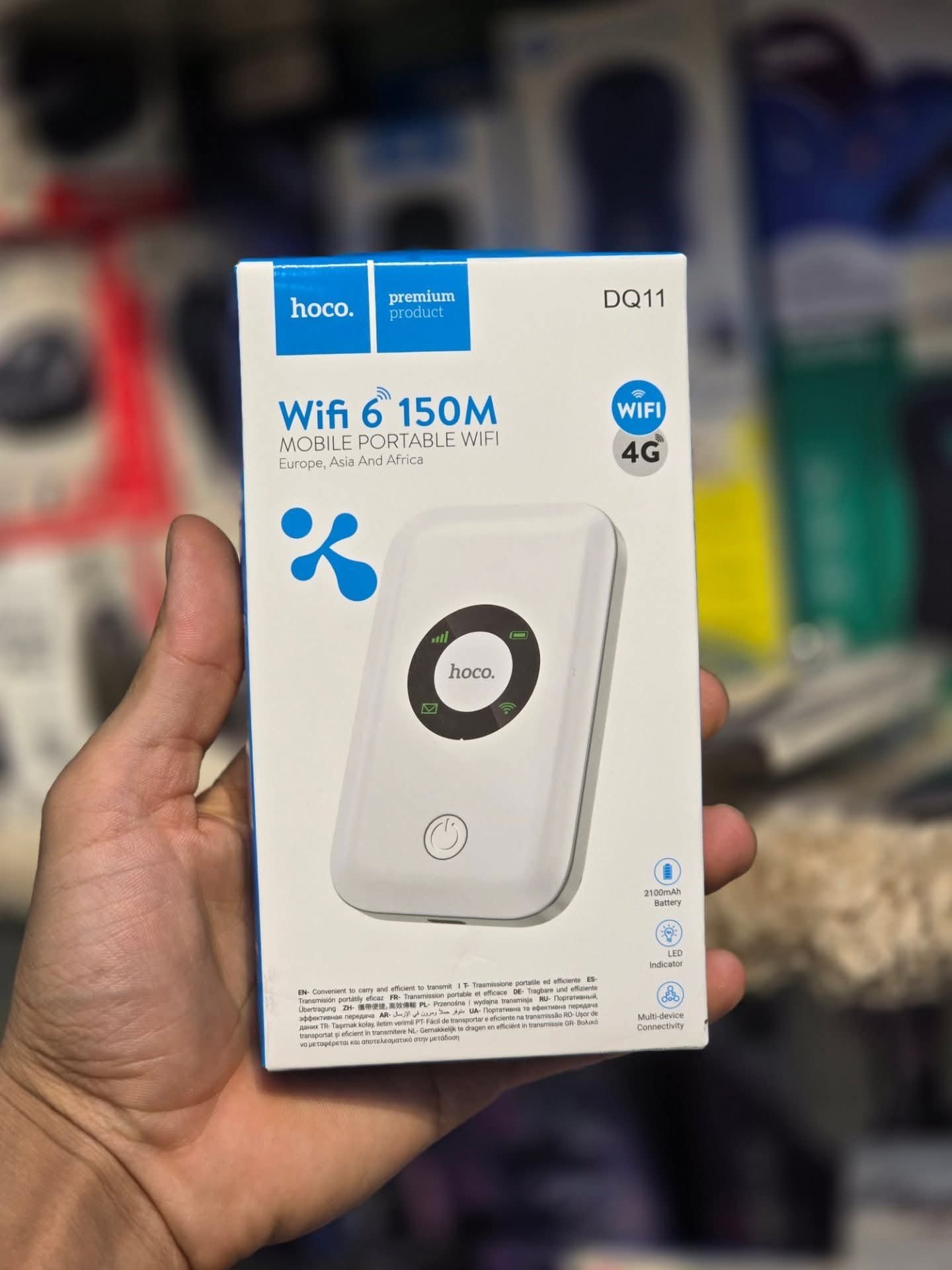 هاذا هو راوتر HOCO DQ11 Mobile Portable WiFi 4G — موديم متنقّل يخدم بالشرائح (SIM) ويعطيك WiFi وينما تروح.
