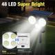 Lampes solaires d’extérieur 48 LED ultra-lumineuses : lampes solaires de jardin d’extérieur avec 48 grandes LED à rendu des couleurs élevé, luminosité augmentée de 80 %, lumière blanche froide ultra-lumineuse de 6 500 K jusqu’à 750 lm. La tête d’éclairage et le panneau solaire sont réglables de manière flexible pour répondre à vos différents besoins.Détecteur de mouvement et allumage automatique – Cette lampe solaire avec détecteur de mouvement est équipée d’un capteur PIR haute sensibilité qui détecte les mouvements dans un rayon de 5 à 8 m et à 120°. Passez en mode éclairage continu pour désactiver la fonction détecteur de mouvement. Après une charge complète, la lampe offre 6 à 8 heures d’éclairage continu.[3 Modes Réglables] – Projecteur solaire pour extérieur avec détecteur de mouvement mode lumière de sécurité : 100% de luminosité, lorsqu’un mouvement est détecté, s’éteint après 20s. Mode faible luminosité : 100% de luminosité, lorsqu’un mouvement est détecté, passe en faible luminosité après 20s. Mode allumage : l’éclairage reste à 20% de luminosité et le détecteur de mouvement est éteint.