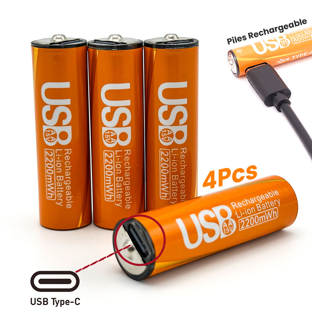 💡 مجموعة 4 حبات حجار AA قابلة للشحن بمنفذ USB-C مدمج