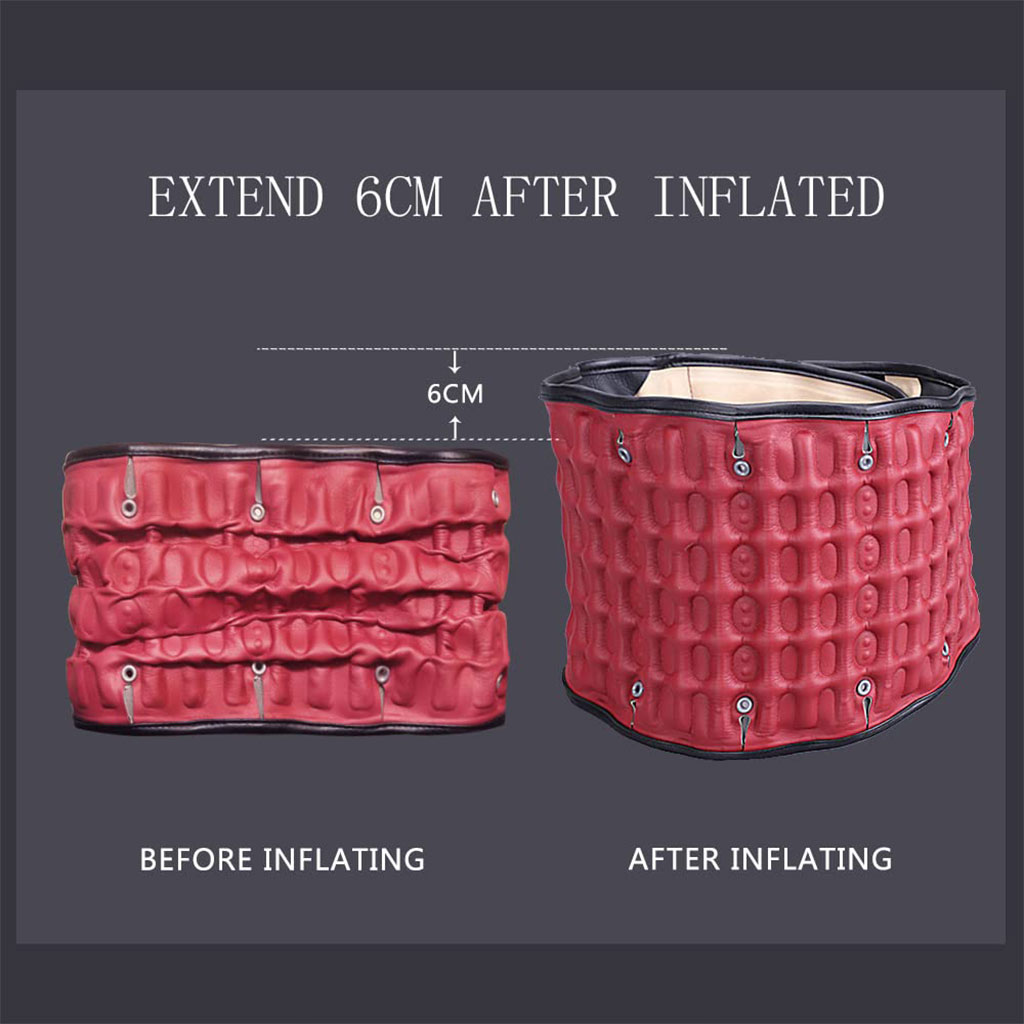 الأعمدة الهوائية القابلة للتمدد توفر دعماً آمناً للفقرات القَطَنية.علاج فك الضغط دون أي تدخل جراحي أو أدوية.الحزام قابل للنفخ بالهواء وخفيف جداً.عملي وسهل الاستخدام في أي وقت وأي مكان.يتمدد عمودياً ليقوم بشدّ لطيف لأسفل الظهر، مما يساعد على فكّ الضغط عن الغضاريف والعضلات.